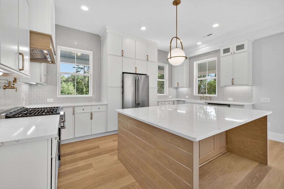 - Stunning chef’s kitchen with an oversized island