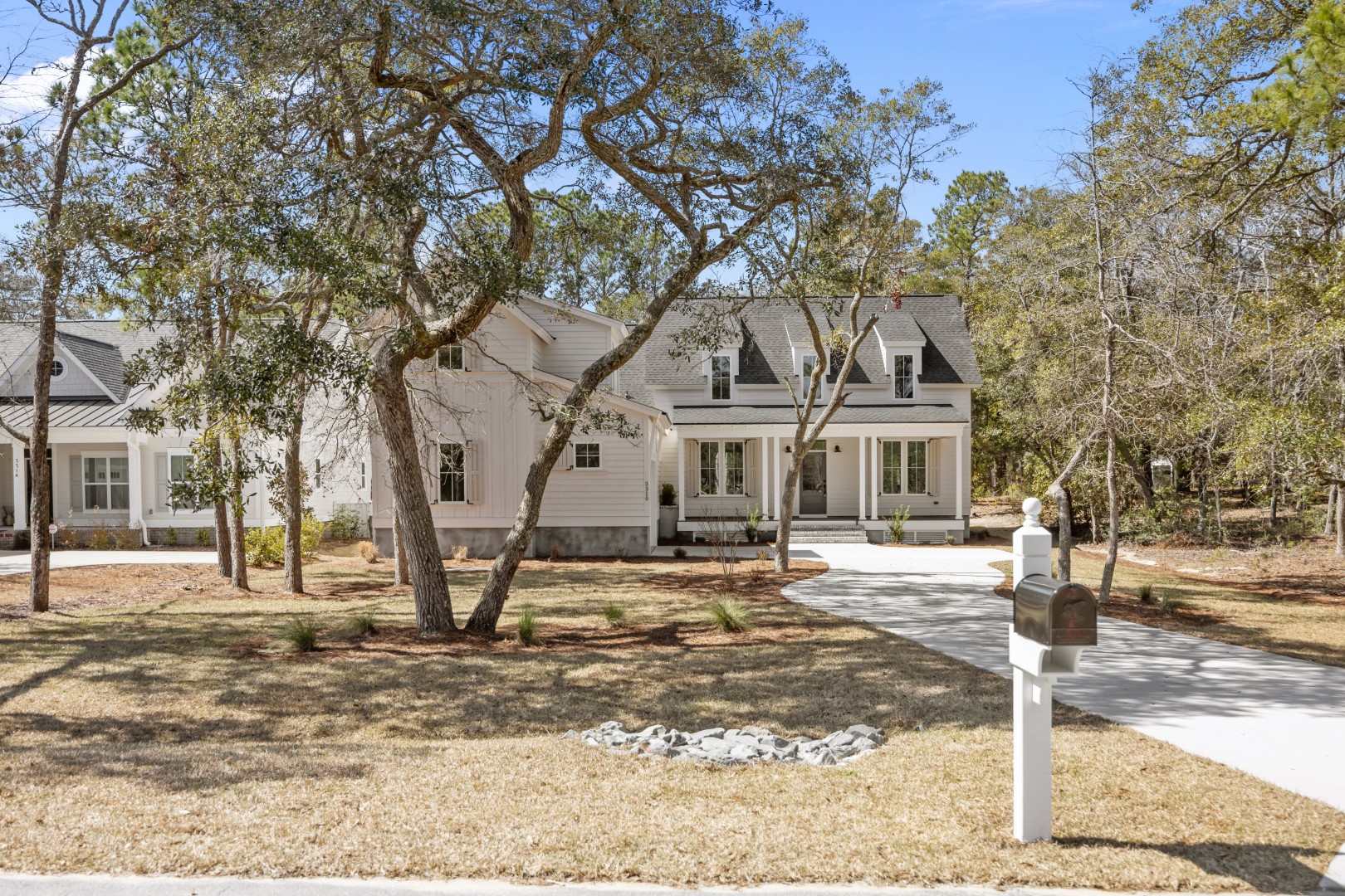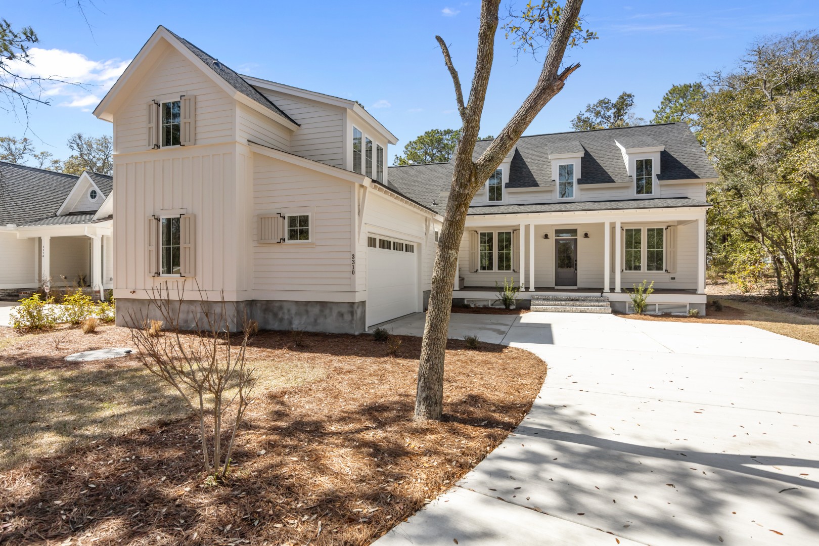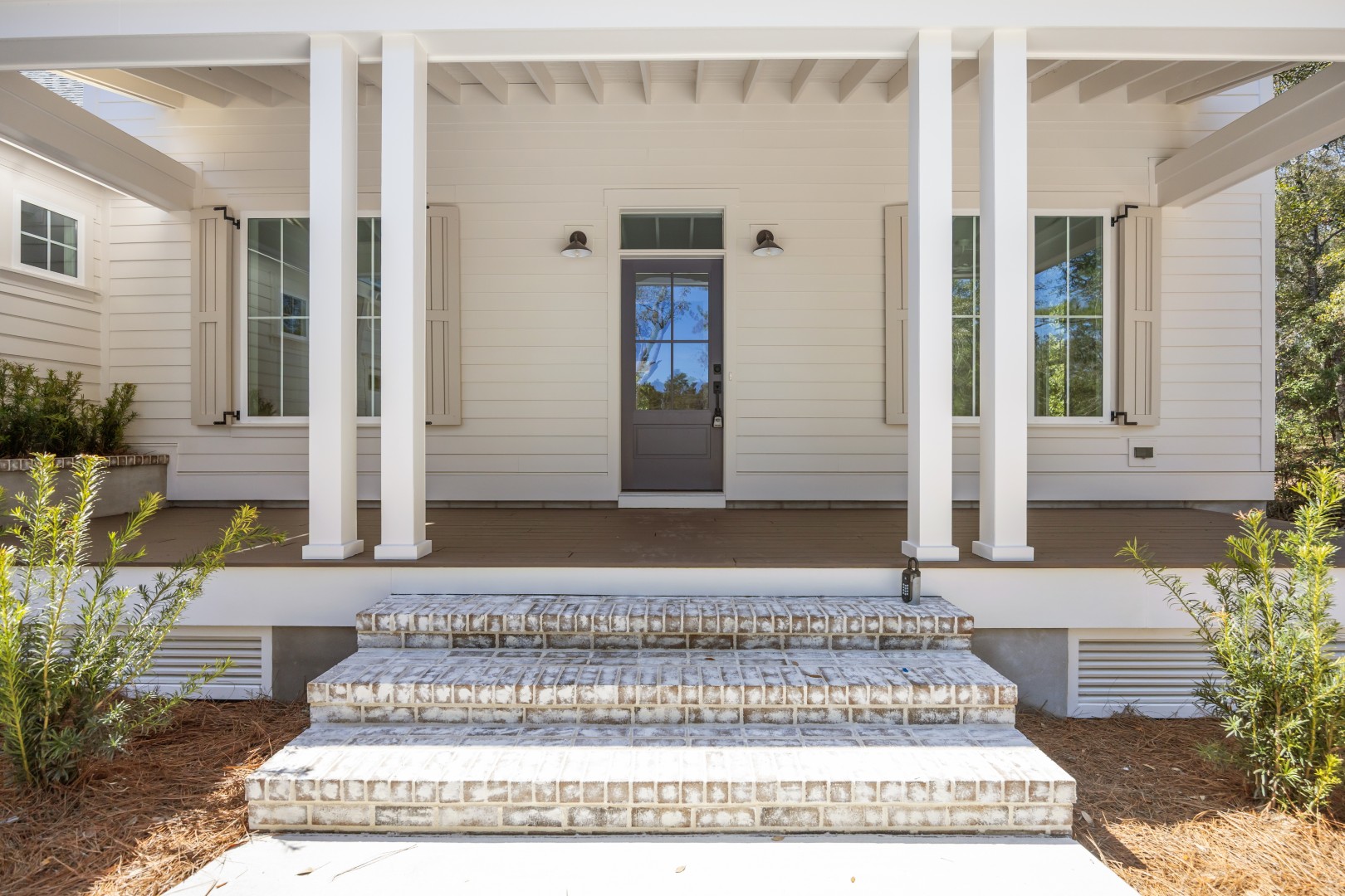 The Four Waters offers a thoughtful balance of classic charm and smart, livable design. Anchored by a wide columned front porch, this home invites you into an open, airy layout with plenty of natural light and effortless flow between living, dining, and kitchen spaces. The main-level primary suite is light-filled and sized generously, featuring a cozy sitting room, large walk-in closet, and a spa-like bath with zero-entry shower. Upstairs, a flexible bonus room with full bath provides a hideaway for guests, hobbies, or movie nights. Whether you’re sipping coffee on the rear porch or hosting gatherings in the open-concept heart of the home, Four Waters is designed for elevated, everyday living with just the right touch of coastal ease.