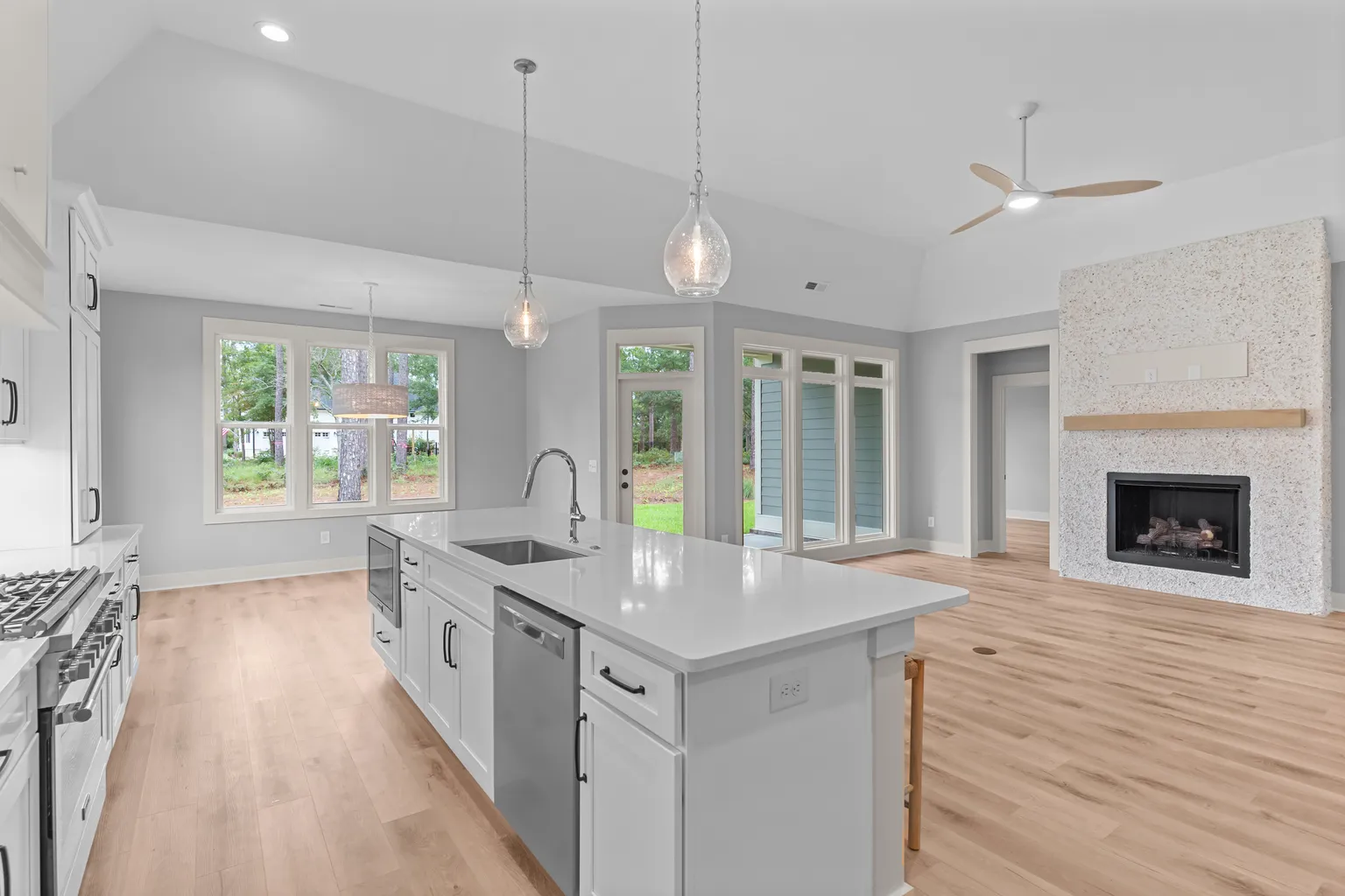Refined Southern charm meets modern, open-concept living in The Charleston III. Designed with timeless curb appeal and coastal functionality in mind, this home welcomes you with a spacious wraparound porch and a thoughtfully crafted layout that flows effortlessly from room to room. Inside, you’ll find an expansive main living area with 10-foot ceilings, a luxurious primary suite on the main level, and flexible spaces designed for both everyday life and entertaining. Whether you’re hosting guests on the rear porch or retreating upstairs to one of the secondary bedrooms, The Charleston III blends classic design with the comforts of contemporary living.
